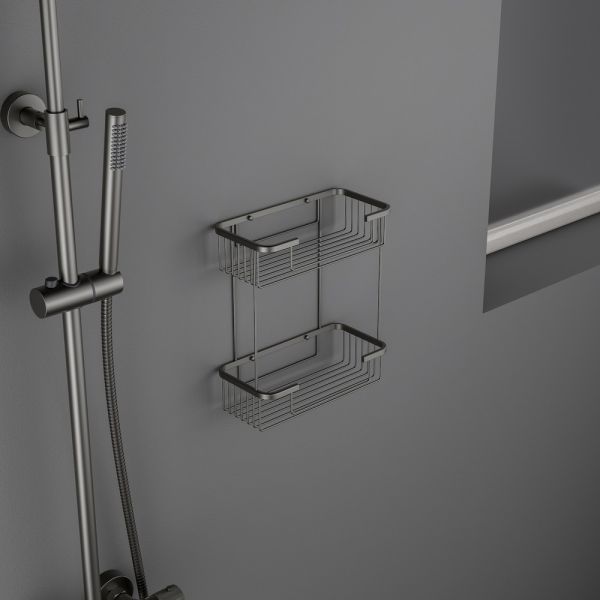 "Черное золото" - неизменно эффектный и привлекающий внимание цвет. Приглушенный мягкий оттенок черного, подчеркнет форму раковины или цвет мебели.Полка двойная Timo Saona 13083 - практичный аксессуар, который дополнит интерьер в ванной комнате. Полка является удобным решением для расстановки предметов первой необходимости, поможет сохранить в помещении уют и порядок. Аксессуары для ванной комнаты и туалета - важные составляющие комфортной и продуманной обстановки. Цвет "черное золото" не капризен в уходе, на нем менее заметны загрязнения и мелкие царапины.