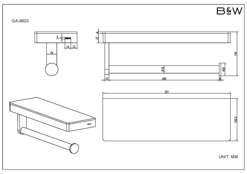 Полка и держатель для полотенца Black and White Gravity 9603GM Темно-серыйКоллекция выполнена в двух цветовых решениях CHROME и GUN METAL. Благодаря использованию закаленного стекла, каждая деталь аксессуара приобретает свое уникальное отражение. В цветовом решении GUN METAL используется черное стекло. Для удобства пользования, на концах держателя для туалетной бумаги использованы стопоры, которые не позволяют рулоны слетать при использовании. Коллекция выполнена из надежных материалов: латунь и закаленное стекло, именно это позволяет не беспокоиться о надежности и увеличенном сроке службы каждого изделия.