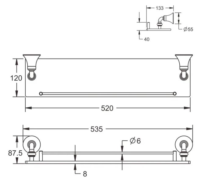 Полка стеклянная Rose RG1219 54см хром