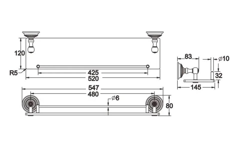 Полка стеклянная Rose RG1419Q 55см бронза