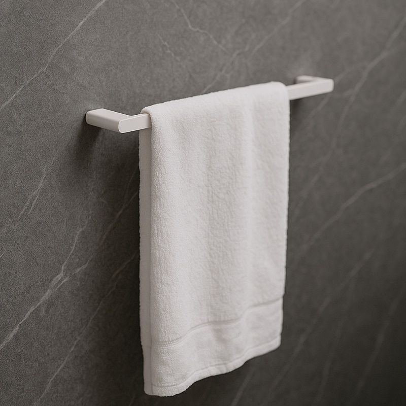 Держатель для полотенец в матовом белом цвете подчёркивает лёгкость и чистоту интерьера. Изготовлен из нержавеющей стали SUS 304, устойчивой к влаге и коррозии. Матовая поверхность с антиследовым покрытием надолго сохраняет идеальный вид.