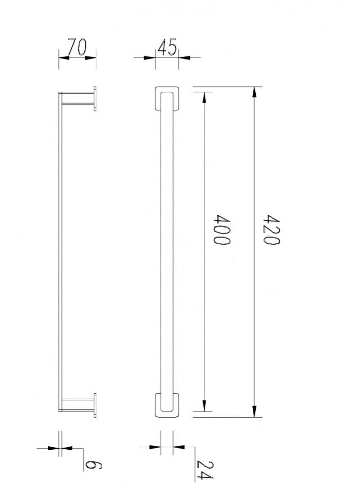 • ширина: 42 см, высота: 4,5 см, расстояние от стены: 7 см