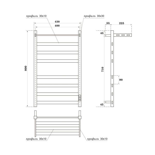 Полотенцесушитель электрический APEXTERMO Terra TR11184GF 800x400 с крючками и полкой графит металлик купить