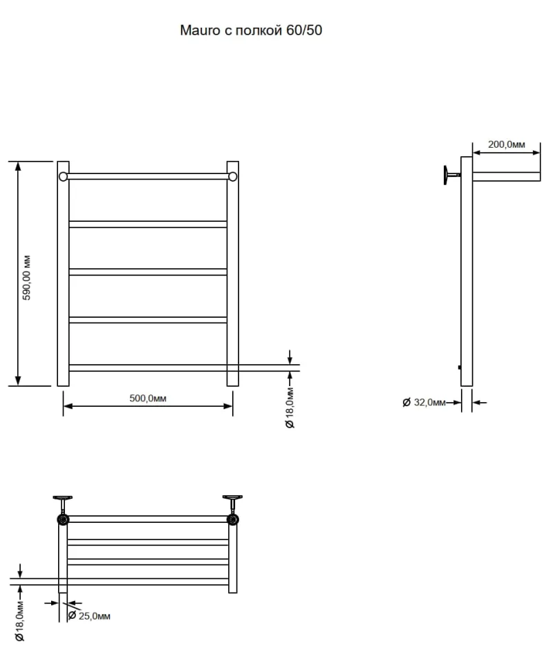 Полотенцесушитель электрический Aquanet Mauro 282006 с полкой 60x50 см хром