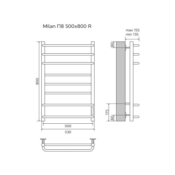 Полотенцесушитель электрический AZARIO MILAN AZ90858 500/800 8 секций, тен справа, хром купить