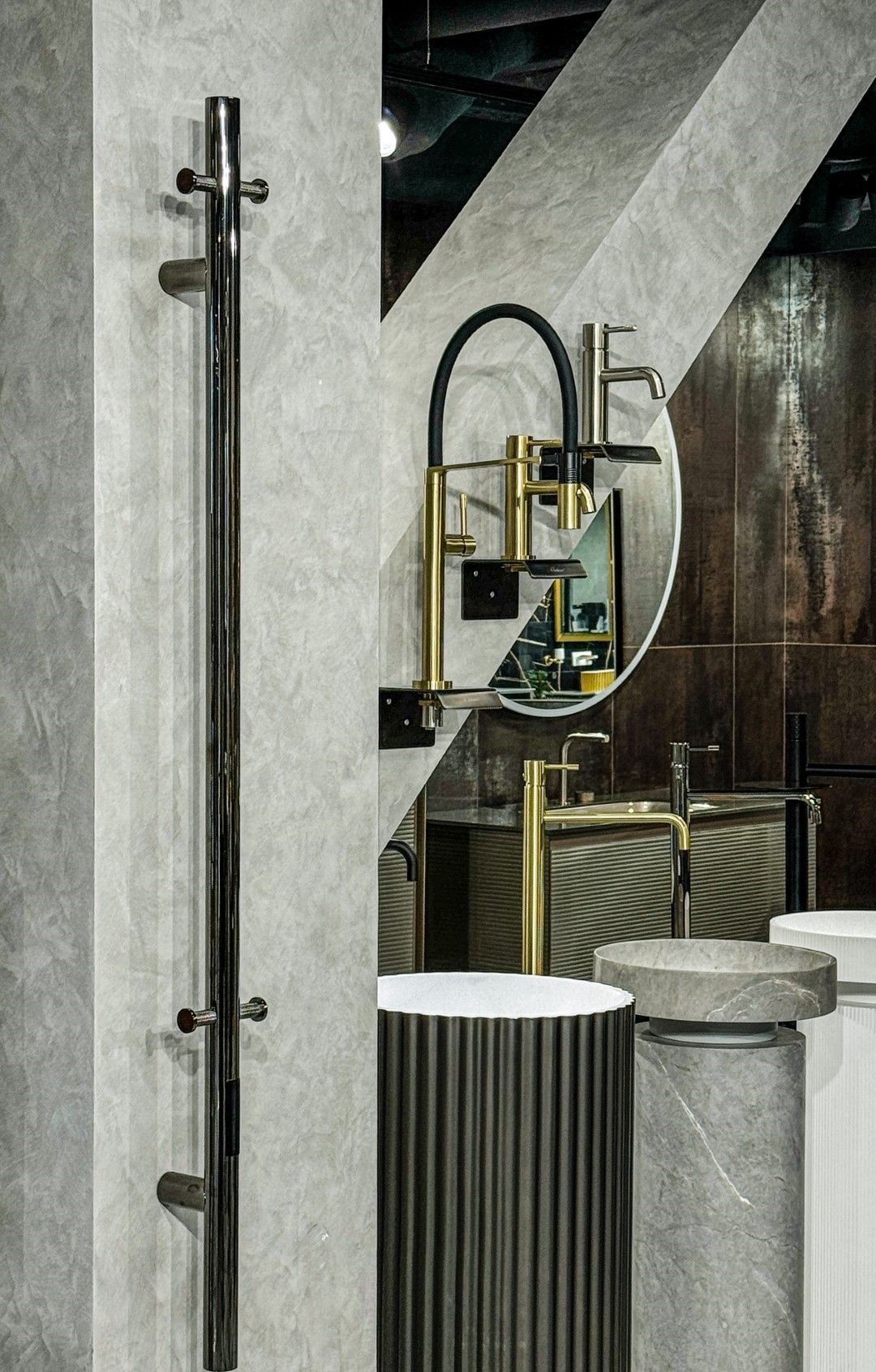 Новый электрический полотенцесушитель Boheme UNO выполнен из нержавеющей стали и дополнен рифлёным декором. Изящный минималистичный дизайн, диаметр 4,2см, высота 150см. Ну и конечно, все цвета.