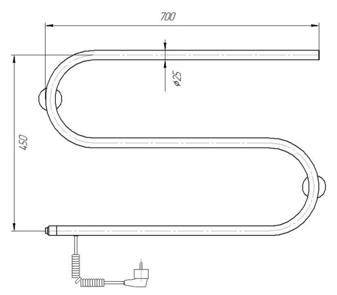 Электрический полотенцесушитель S-образный из нержавеющей стали.