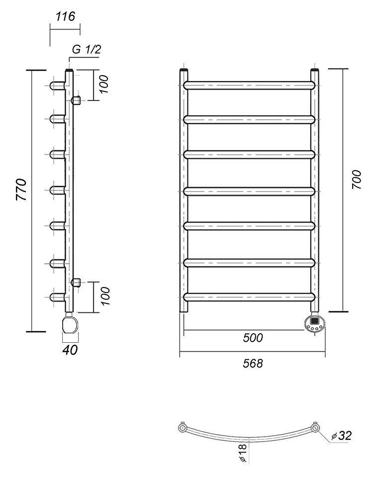 Количество перекладин: 7Коллекция: КалипсоТип: электрическиеЦвет: золотоМощность, Вт: 300Ширина (мм): 532Высота (мм): 700Глубина (мм): 105-95Вес: 6,2Объем: 0,061875Тэн/подключение: подключение справаСтрана: РоссияГарантия: 2 года