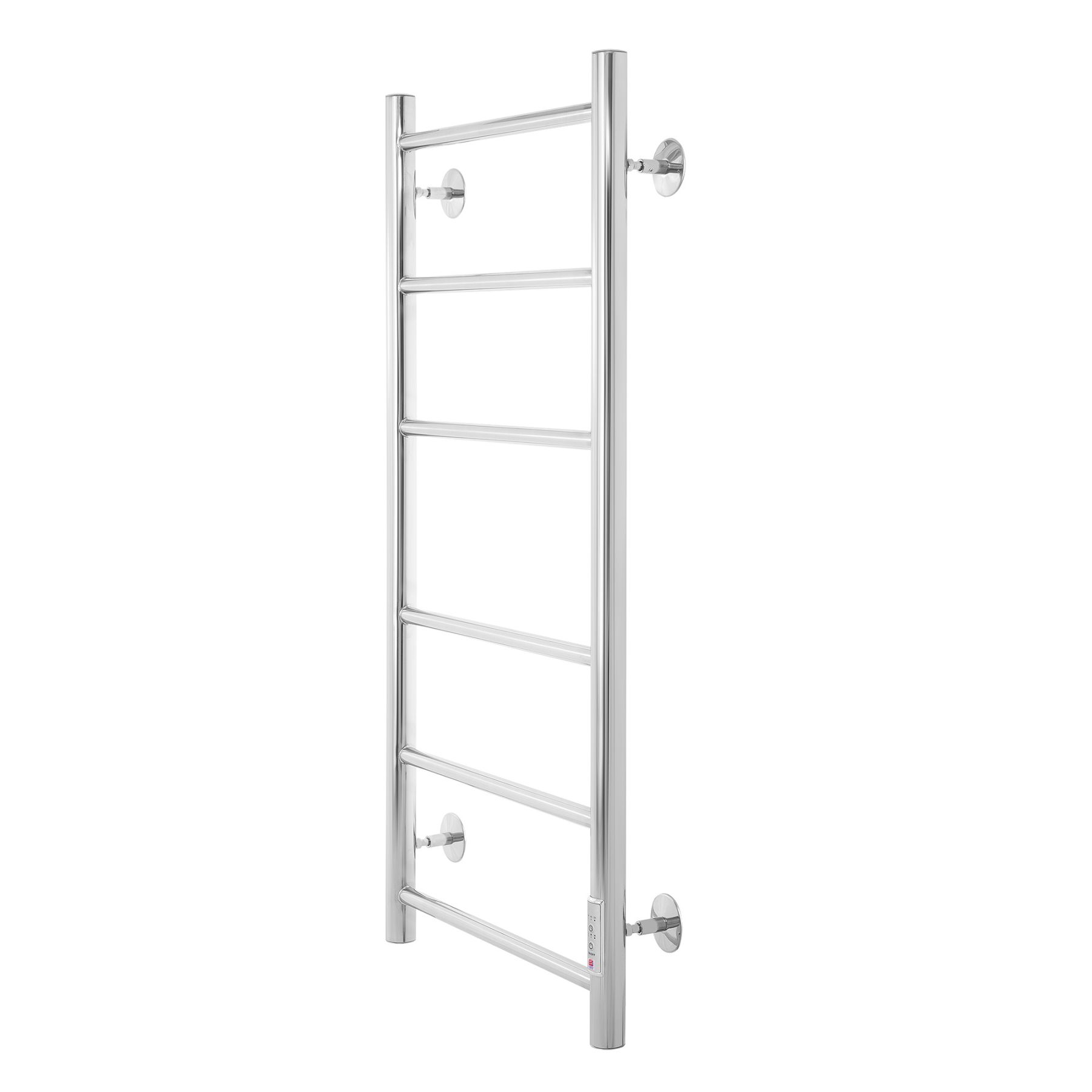 Energy Round – электрический полотенцесушитель с терморегулятором и таймером, выполненный в форме классической лесенки с круглыми в сечении перемычками. Нагревается за счет безопасного греющего кабеля в изоляции.Полотенцесушитель оснащен блоком управления с удобной регулировкой мощности (60%, 80% и 100%), а также времени отключения (через 2, 4 или 6 часов). Благодаря невысокой мощности имеет низкий расход электроэнергии. Подключается скрытым или наружным способом.Характеристики:
