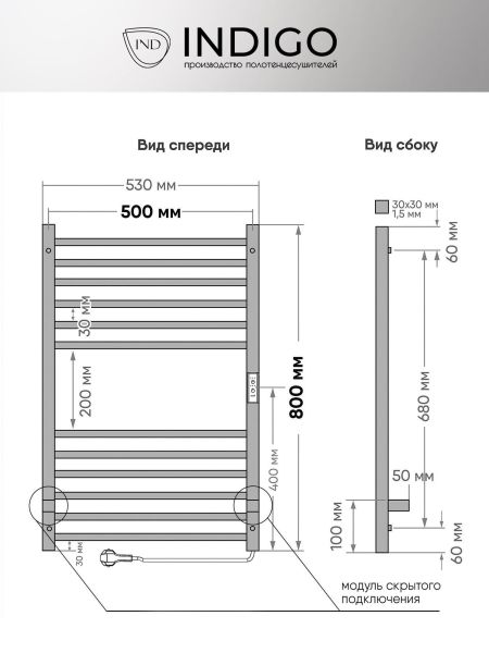 Полотенцесушитель электрический Indigo Attic LСLATCE80-50Rt с таймером 80x50 см хром купить