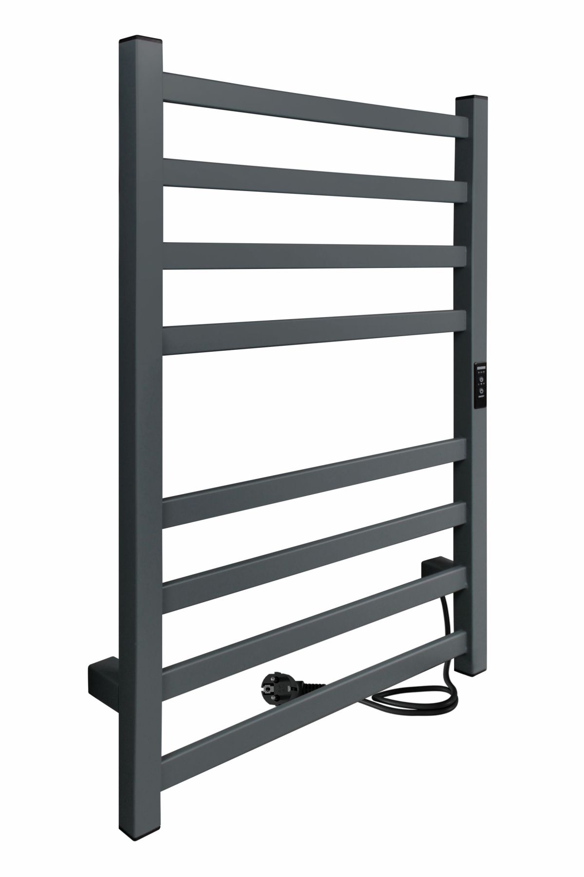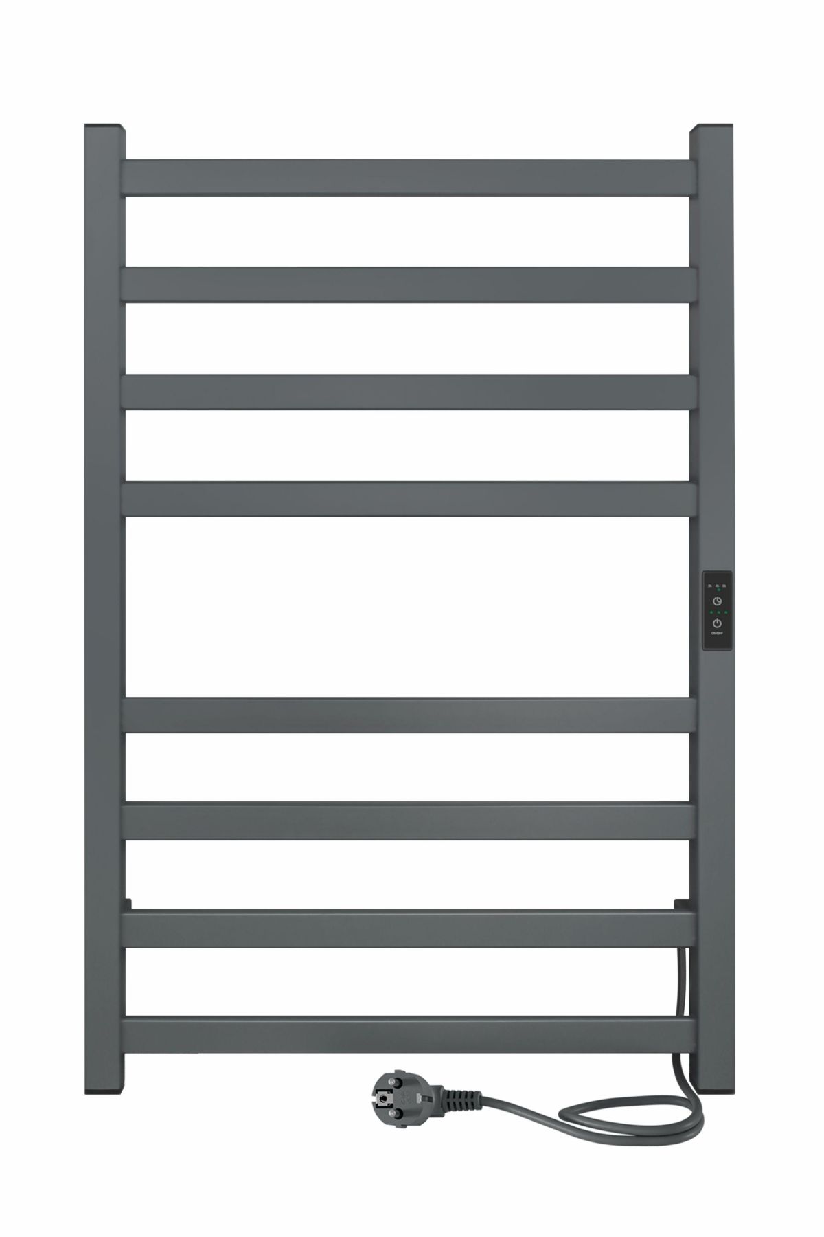 Полотенцесушитель электрический INDIGO Oktava Slim 3 в сером матовом оттенке. Имеет встроенный терморегулятор нагрева с тремя режимами температуры: 40, 45, 50 градусов и таймером на отключение через 2, 4, 6 часов. Длина провода до 1,1 метра. Универсальность изделия предусматривает подключение через провод или скрытое подключение без покупки дополнительного переходника.