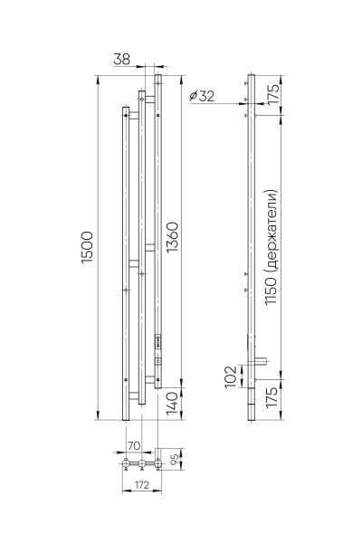 Полотенцесушитель электрический Indigo Sky LSKE150-17BRRt 150x17 см чёрный муар купить