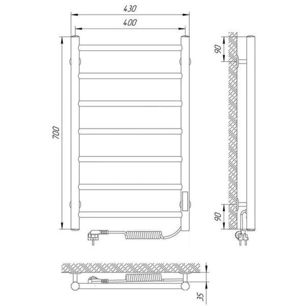 Модель: ДжазКод товара: 73207472Материал: сталь нержавеющая AISI304Диаметры и толщина: стойка Ø32, толщина 1,5 мм; перемычка Ø20, толщина 1,2 ммРегулятор: на стойке (программируемый регулятор с таймером)Терморегулятор: даТаймер: даВозможность скрытого монтажа: да (приобретается отдельно)Размещение шнура: справа (Также есть исполнение с левым подключением)Температура поверхности изделия*: 50±5°CНапряжение питания: 220 ВВес: 4,1 кгКомплектация: