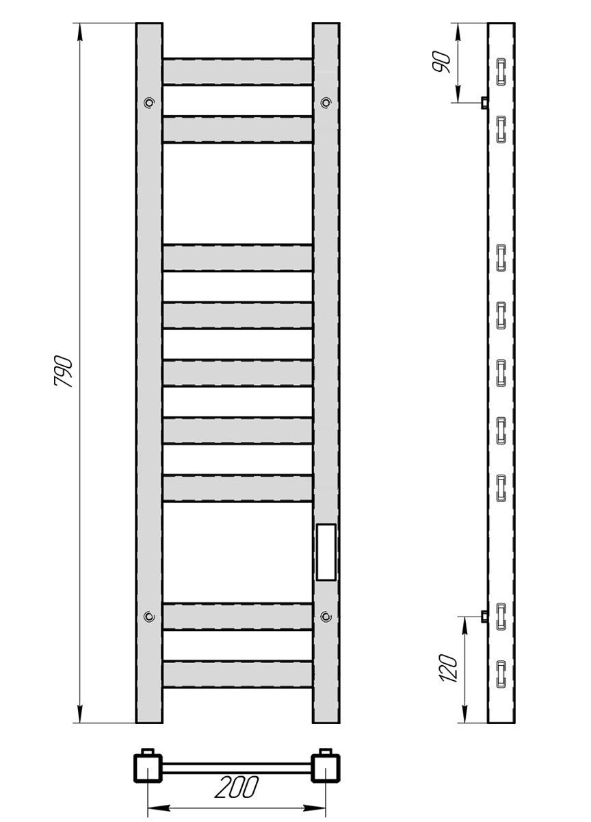 Полотенцесушитель электрический Laris Флавиа 73207655 правый П9 20x80см белый муар