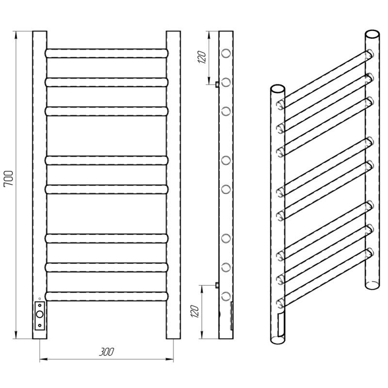 Полотенцесушитель электрический Laris Лаванда ЧКЧ П8 300х700 L 73207624 Черный муарЭлектрический ПС изготовлен из конструкционной стали с толщиной стенки 1,5 мм для обеспечения оптимальной температуры нагрева изделия. Внутри установлен сухой ТЭН который обеспечивает экономию энергии,увеличивает срок службы изделия (по сравнению с изделиями с жидкостным теплоносителем). ТЭН имеет 3 степени защиты-от пыли,влаги, перегрева -100 процентная безопасность при эксплуатации! Гарантия 5 лет на изделие и лакокрасочное покрытие. Краска порошковая черная - матовая (муар) RAL 9005 с фосфотирующей основой. Терморегулятор кнопочный на стойке с функцией таймера. Температура нагрева поверхности изделия 50-55C. Для скрытого подключения изделие укомплектовано модулем скрытого подключения. Изделия торговой марки Laris имеют высокий уровень эксплуатационной надежности, обладают хорошей функциональностью при использовании. ТМ Laris - Репутация Комфорта