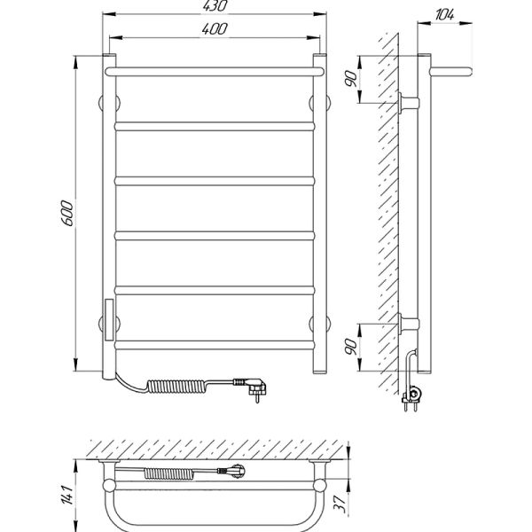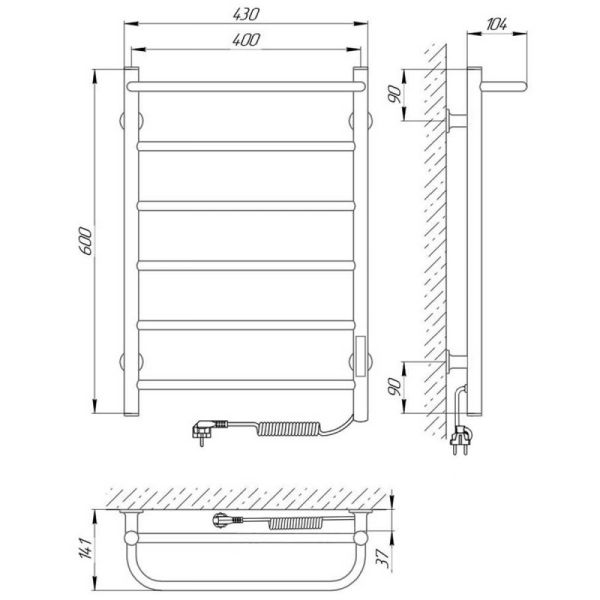 Полотенцесушитель электрический Laris Прайм ЧКЧ П6 400x600 R 73207593 Черный муар купить