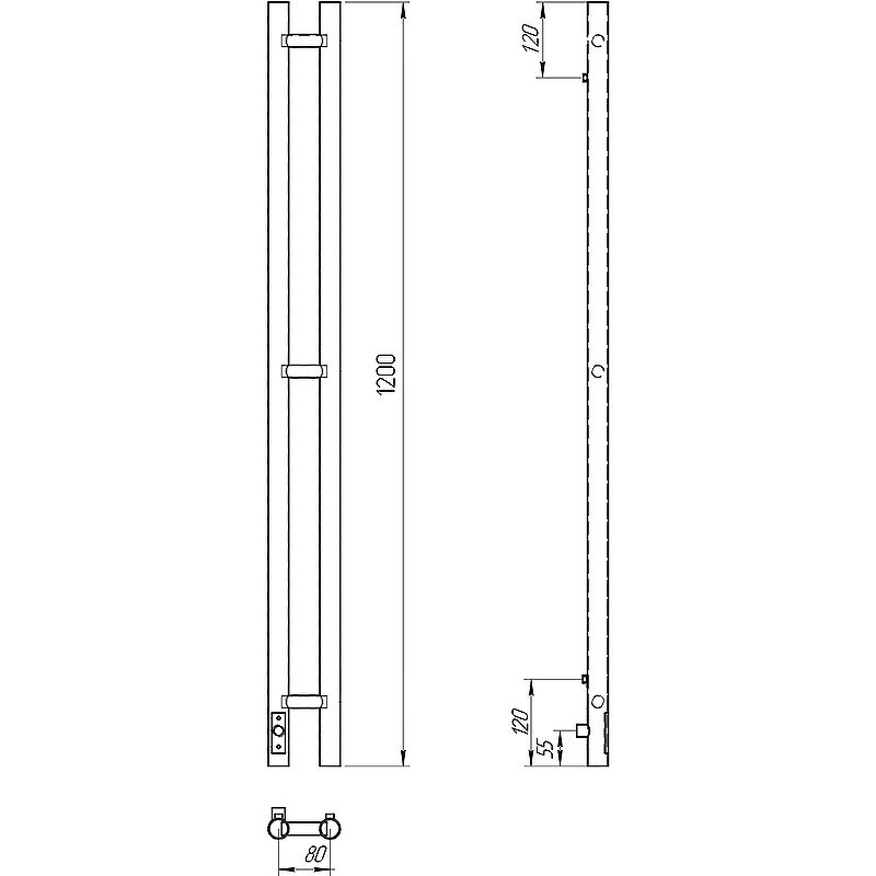 Полотенцесушитель электрический Laris Прайм Дуэт ЧКЧ 80х1200 L 73207634 Черный муар