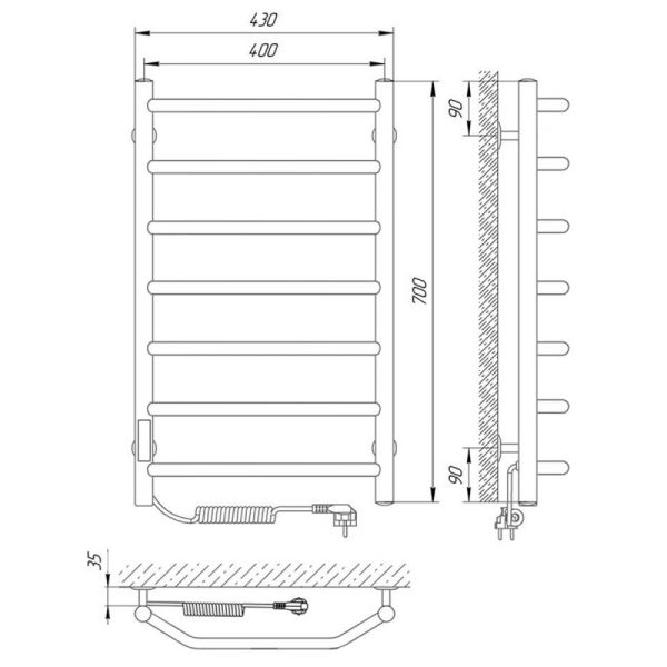 Модель: ВикторияКод товара: 73207638Материал: сталь нержавеющая AISI304Диаметры и толщина: стойка Ø32, толщина 1,5 мм; перемычка Ø20, толщина 1,5 ммРегулятор: на стойке (программируемый регулятор с таймером)Терморегулятор: даТаймер: даВозможность скрытого монтажа: да (приобретается отдельно)Размещение шнура: слева (Также есть исполнение с правым подключением)Температура поверхности изделия*: 50±5°CНапряжение питания: 220 ВВес: 5 кгКомплектация:
