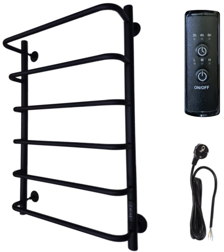 Телескопическое крепление без кольца - 3 шт;Комплект скрытого монтажа - 1 шт;Кабель с вилкой 220В - 1 штПорошковое напыление позволяет окрасить изделие в цвет - Черный RAL 9005 (матовый). Порошковая окраска полотенцесушителя позволяет получить качественное и надежное полимерное покрытие. Черный RAL 9005 (матовый) не только впишется в изысканный дизайн вашей ванной комнаты, он будет притягивать взгляды и прикосновения. Покрытие - матовое, на ощупь очень схоже с покрытием «Soft Touch» . На изделии не остается ни пятен, ни разводов после пользования. В уходе данная поверхность неприхотлива, достаточно протереть влажной или сухой салфеткой из микрофибры. Закажите прямо сейчас изделие в черном матовом цвете, ловите восхищенные взгляды гостей и получайте истинное удовольствие от вашего полотенцесушителя на все 100%.