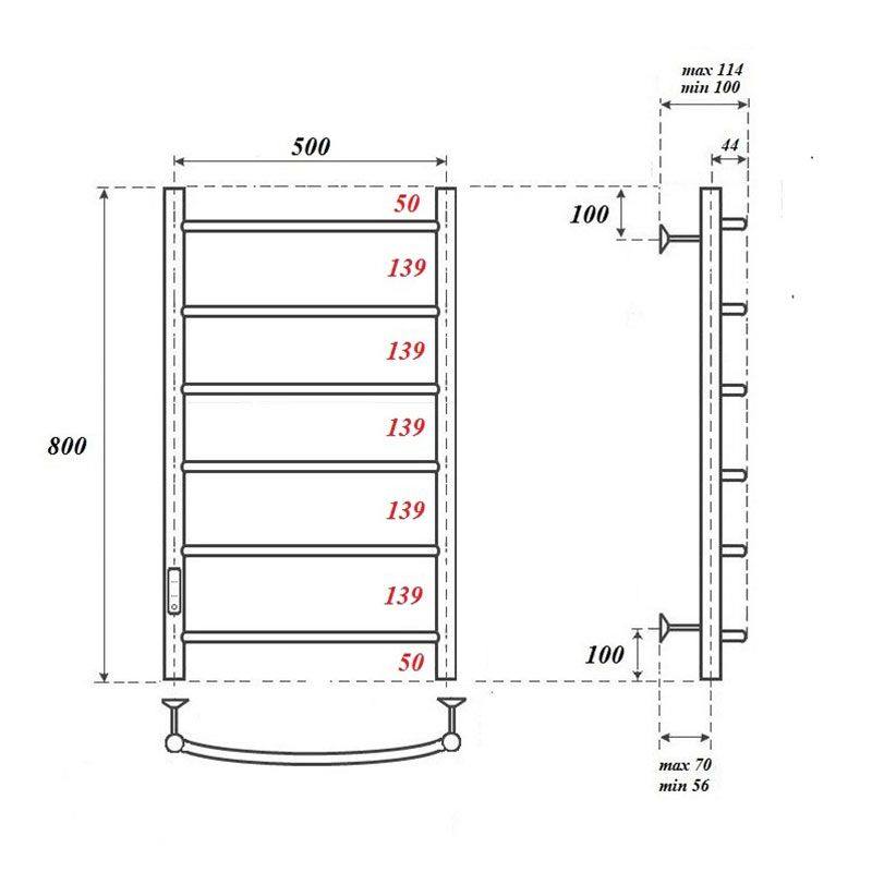 Полотенцесушитель электрический Point Афина PN04758B 50x80 см черный