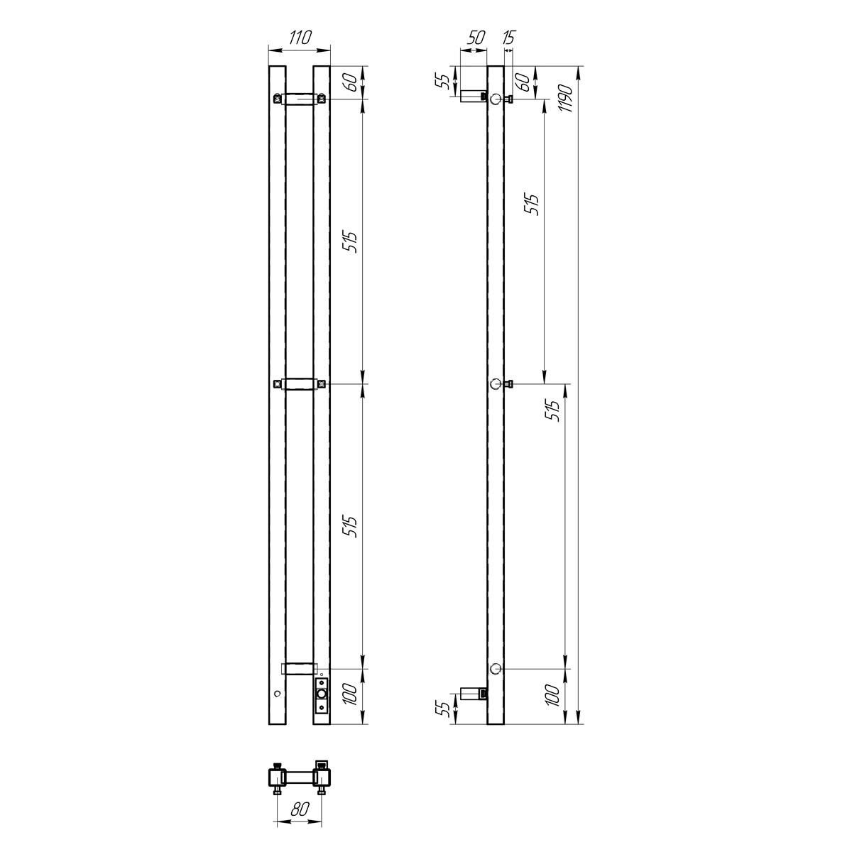 Полотенцесушитель электрический Point Гермес PN13812GB П3 80x1200 диммер справа графит блеск