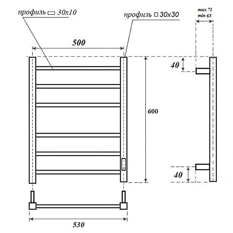 Полотенцесушитель электрический Point Меркурий П6, ширина 50 см, высота 60 см, диммер справа, черный, PN83856BКоличество секций - 6