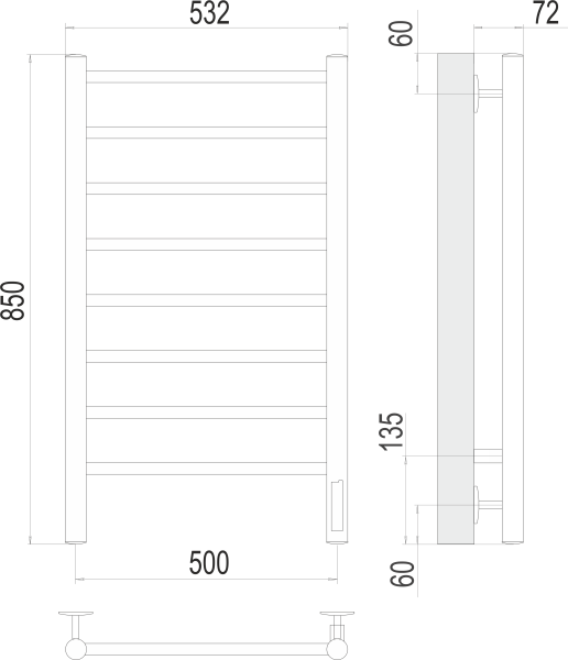 Полотенцесушитель электрический Terminus Аврора П8 500х850