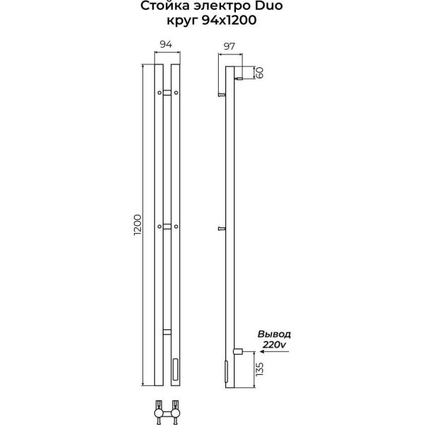 Полотенцесушитель электрический Terminus Стойка DUO круг 120