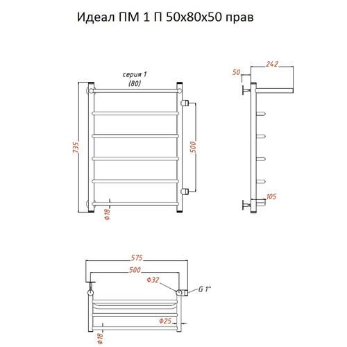 Полотенцесушитель Идеал ПМ 1 50*80*50 (ЛЦ5)