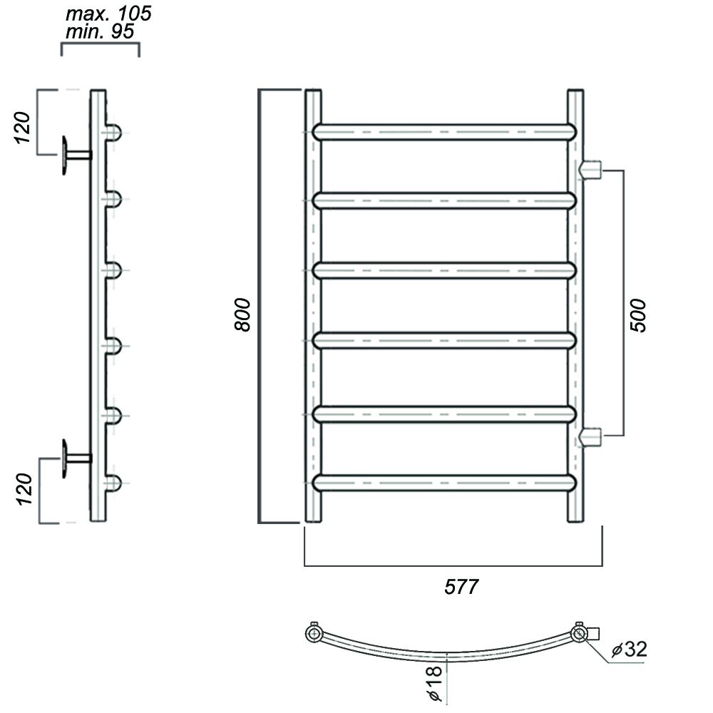 М/о расстояние (межосевое расстояние): 500Количество перекладин: 6Коллекция: КалипсоТип: водяныеЦвет: хромШирина (мм): 577Высота (мм): 800Глубина (мм): 105-95Вес: 5,1Объем: 0,0048Тэн/подключение: боковоеСтрана: РоссияГарантия: 10 лет
