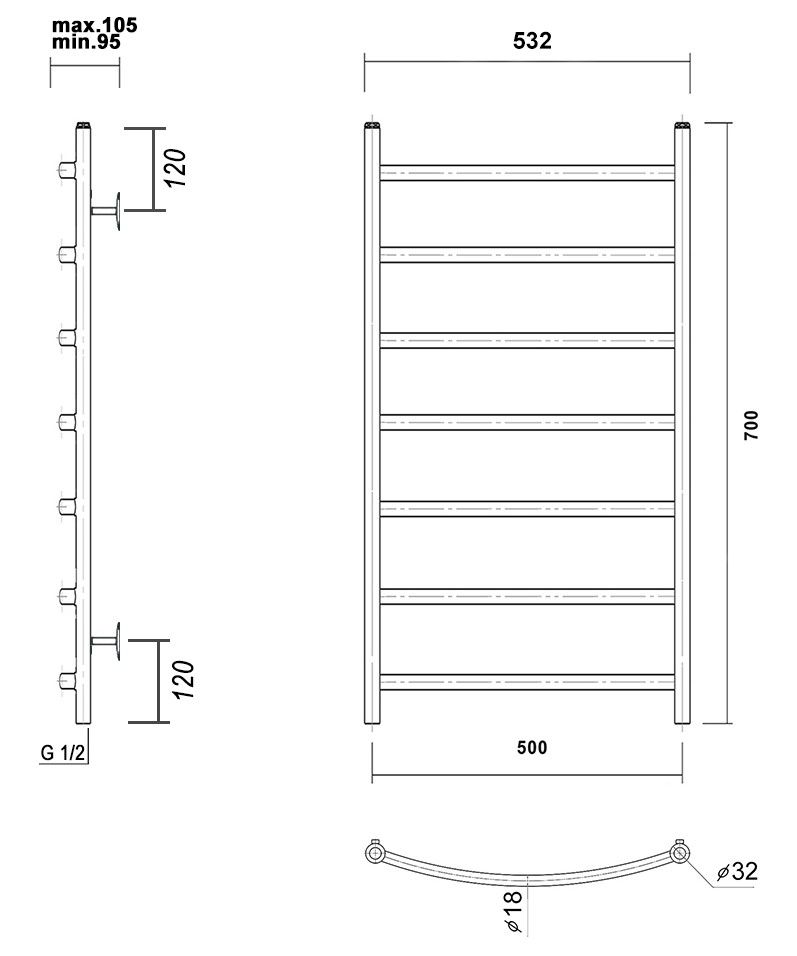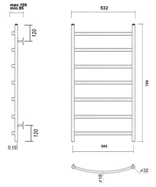 М/о расстояние (межосевое расстояние): 500Количество перекладин: 7Коллекция: КалипсоТип: водяныеЦвет: черныйШирина (мм): 532Высота (мм): 700Глубина (мм): 105-95Вес: 4,07Объем: 0,069Тэн/подключение: нижнееСтрана: РоссияГарантия: 10 лет