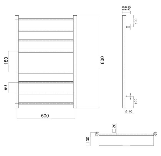 М/о расстояние (межосевое расстояние): 500Количество перекладин: 8Коллекция: КвадроТип: водяныеЦвет: хромШирина (мм): 530Высота (мм): 800Глубина (мм): 90-80Вес: 9,1Объем: 0,0381Страна: РоссияГарантия: 10 лет