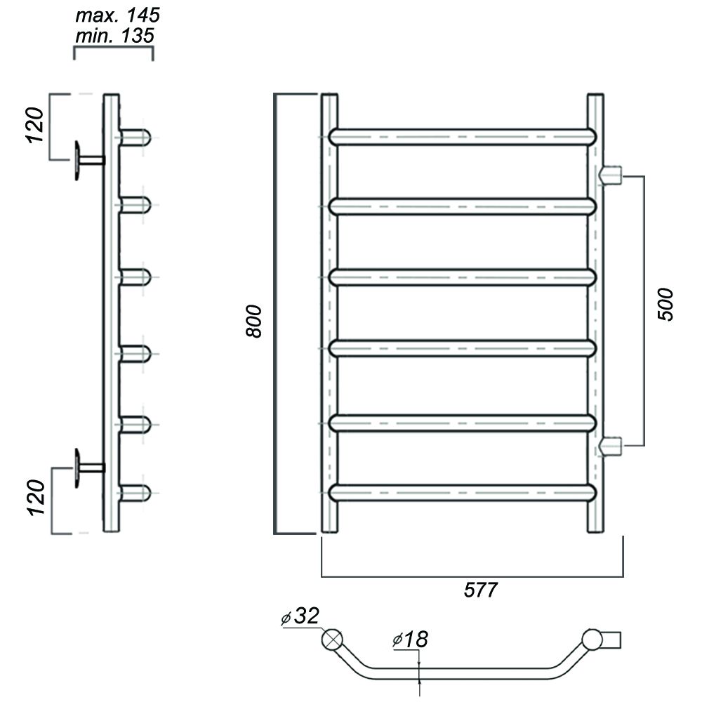 М/о расстояние (межосевое расстояние): 500Количество перекладин: 6Коллекция: ЛаураТип: водяныеЦвет: хромШирина (мм): 577Высота (мм): 800Глубина (мм): 145-135Вес: 4,2Объем: 0,0645Тэн/подключение: боковоеСтрана: РоссияГарантия: 10 лет