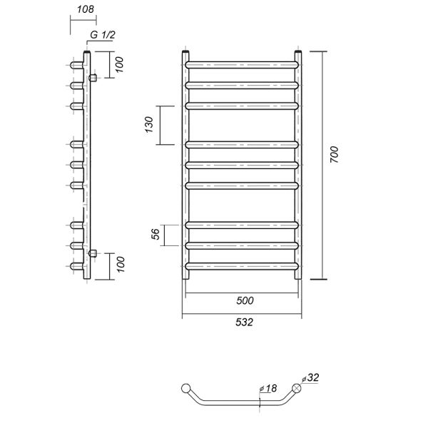 М/о расстояние (межосевое расстояние): 500Количество перекладин: 9Коллекция: ЛаураТип: водяныеЦвет: золотоШирина (мм): 532Высота (мм): 700Глубина (мм): 145-135Вес: 5,63Объем: 0,061875Страна: РоссияГарантия: 10 лет