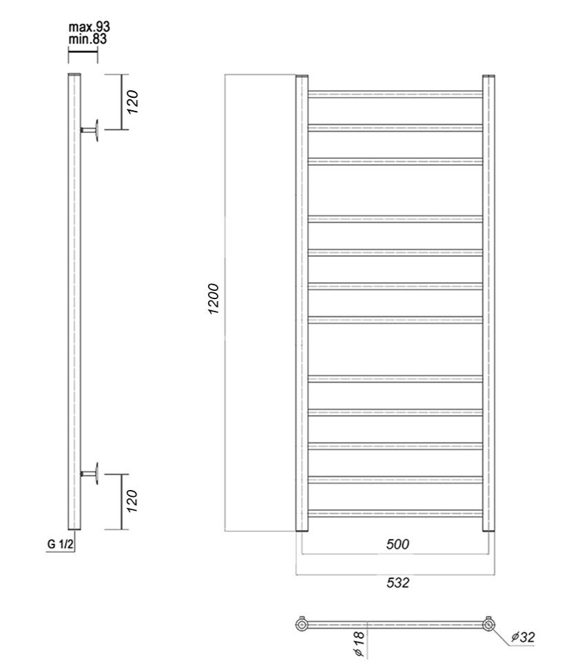 М/о расстояние (межосевое расстояние): 500Количество перекладин: 12Коллекция: МедеяТип: водяныеЦвет: хромШирина (мм): 532Высота (мм): 1200Глубина (мм): 90/80Вес: 7,8Объем: 0,0574Тэн/подключение: нижнееСтрана: РоссияГарантия: 10 лет