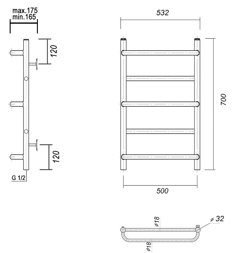 М/о расстояние (межосевое расстояние): 500Количество перекладин: 7Коллекция: ОрфейТип: водяныеЦвет: хромШирина (мм): 532Высота (мм): 700Глубина (мм): 175-165Вес: 5,1Объем: 0,0465Тэн/подключение: нижнееСтрана: РоссияГарантия: 10 лет