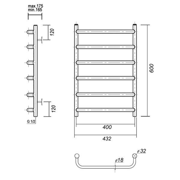 Комплектация: полотенцесушитель, крепление телескопическое 4 шт., заглушка, кран Маевского, угловой переходник HP-НP 1/2*3/4 - 2 шт., паспорт на изделие