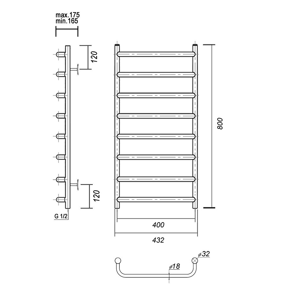 Полотенцесушитель водяной Domoterm Стефано П8 400x800 золото