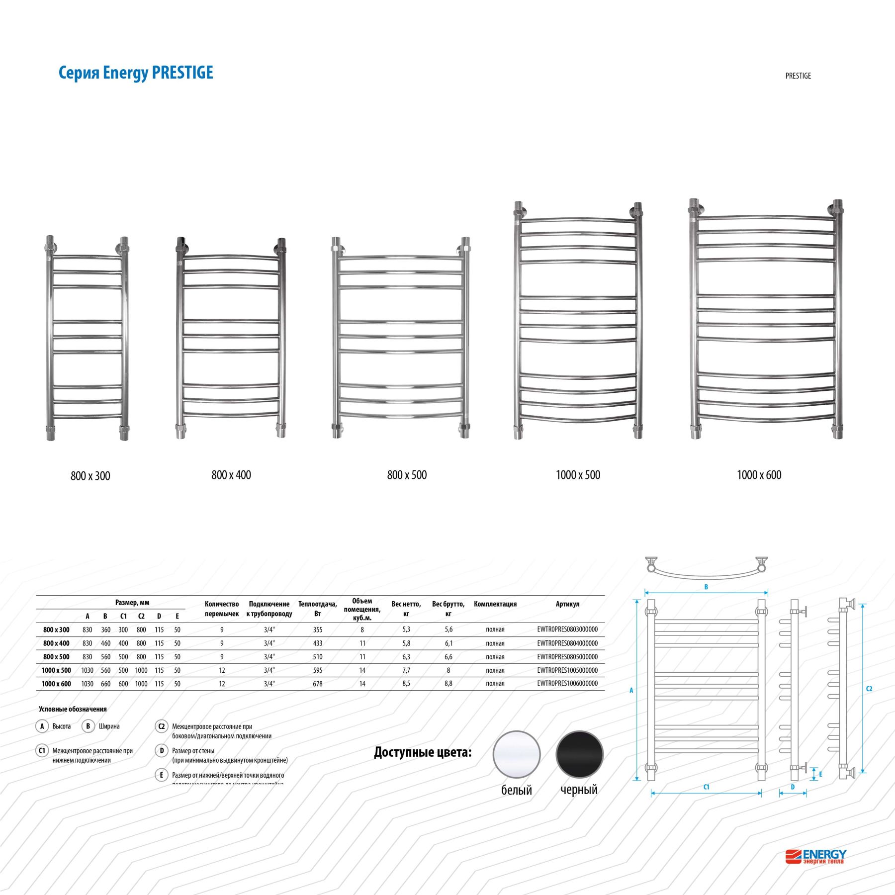 Полотенцесушитель водяной Energy PRESTIGE EWTR0PRES08050R905M 800 x 500 черный матовый купить