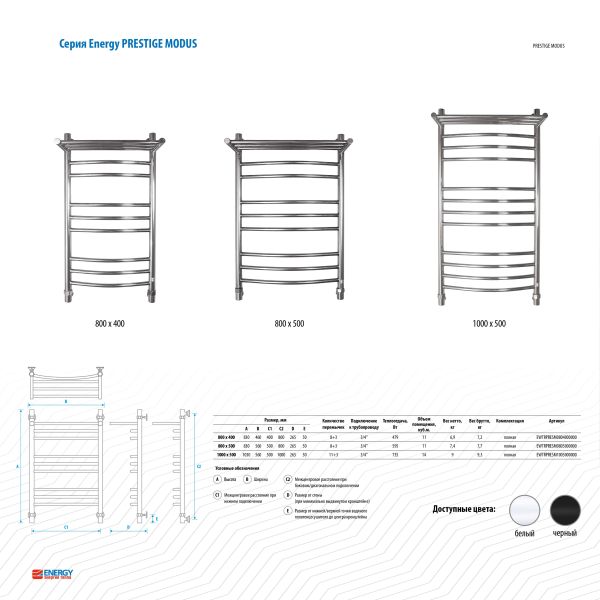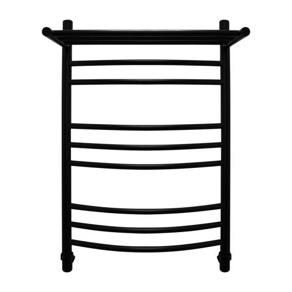 Водяной полотенцесушитель Energy Prestige Modus 800x500 RAL 9005 (черный матовый) - «лесенка c полкой» c выпуклыми перемычками, размещёнными группами. Дополнительная обогреваемая полка с 3 перекладинами увеличивает тепловую мощность и полезную площадь прибора, а также позволяет максимально удобно располагать на нем вещи для просушивания. Используется во всех системах горячего водоснабжения и отопления с рабочим давлением 3 - 15 атм при температуре теплоносителя до 105°С.Межцентровое расстояние: 800 мм (+/-5 мм) при боковом и диагональном подключении, 500 мм (+/-5 мм) при нижнем подключении.В комплектацию входят эксцентрики, позволяющие отрегулировать межцентровое расстояние.Полотенцесушитель изготовлен из высококачественной импортной пищевой нержавеющей стали марки AISI 304 (08Х18Н10). Поверхность изделия окрашена по технологии цветного порошкового напыления - достоинства этой технологии в том, что получаемые изделия прочны, долговечны и экологичны. Сварка швов выполнена по специальной технологии TIG по международному стандарту EN 10217-7. Полотенцесушитель испытан при давлении 50 атм, составляющая его труба — 150 атм, благодаря чему имеет большой запас прочности.Произведен в России. Гарантийный срок - 5 лет. Комплектуется всем необходимым для монтажа. Вся фурнитура производится итальянской фирмой Smart.Комплектация полотенцесушителя: