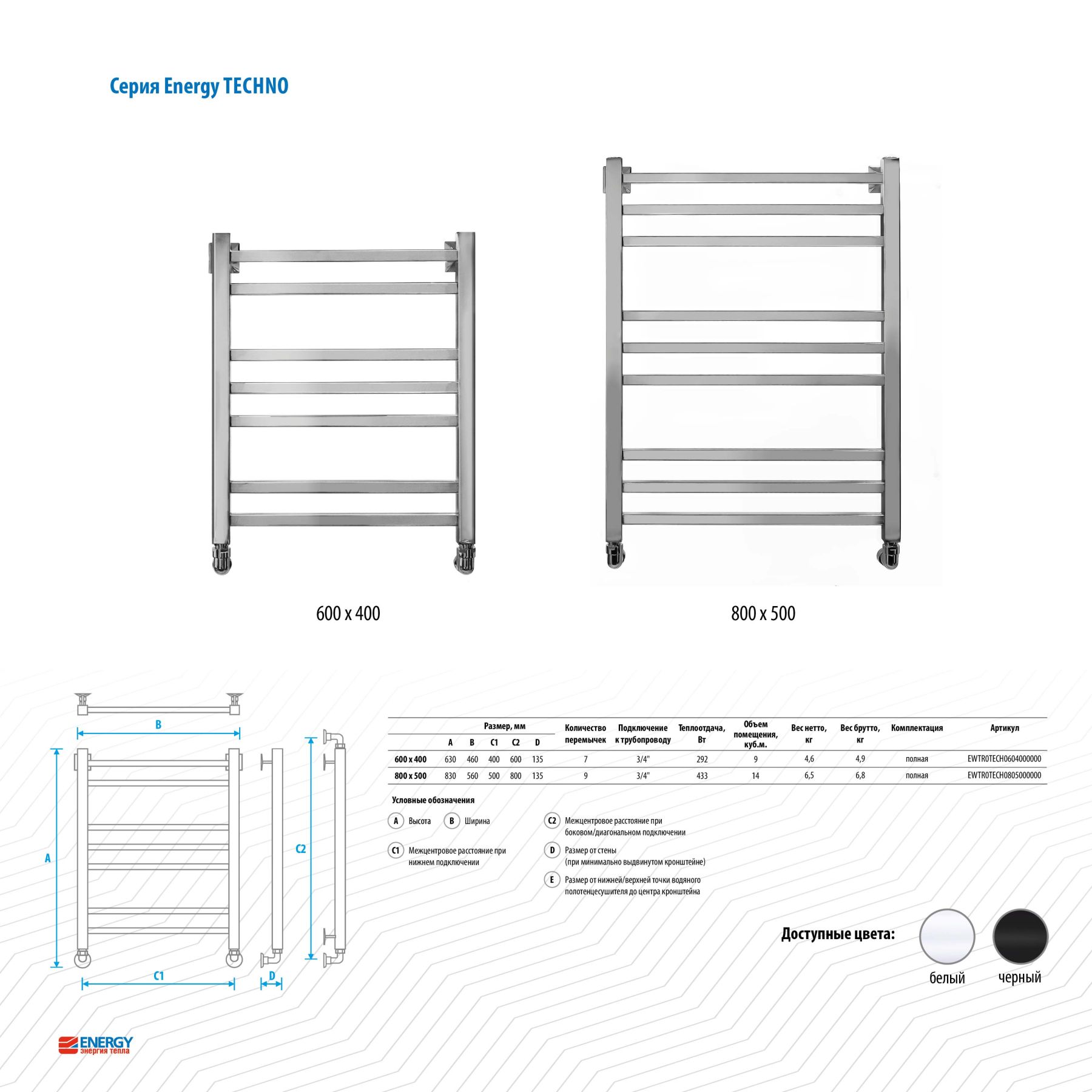 Полотенцесушитель водяной Energy Techno EWTR0TECH08050R905M 800 x 500 черный матовый купить