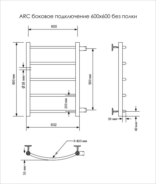 Водяной полотенцесушитель серии «Лесенка» Arc с боковым подключением – это модель, которая изготавливается в большом количестве вариаций размеров. Выбирая полотенцесушитель водяной, стоит учитывать размеры вашей ванной комнаты и места, где он будет размещен.