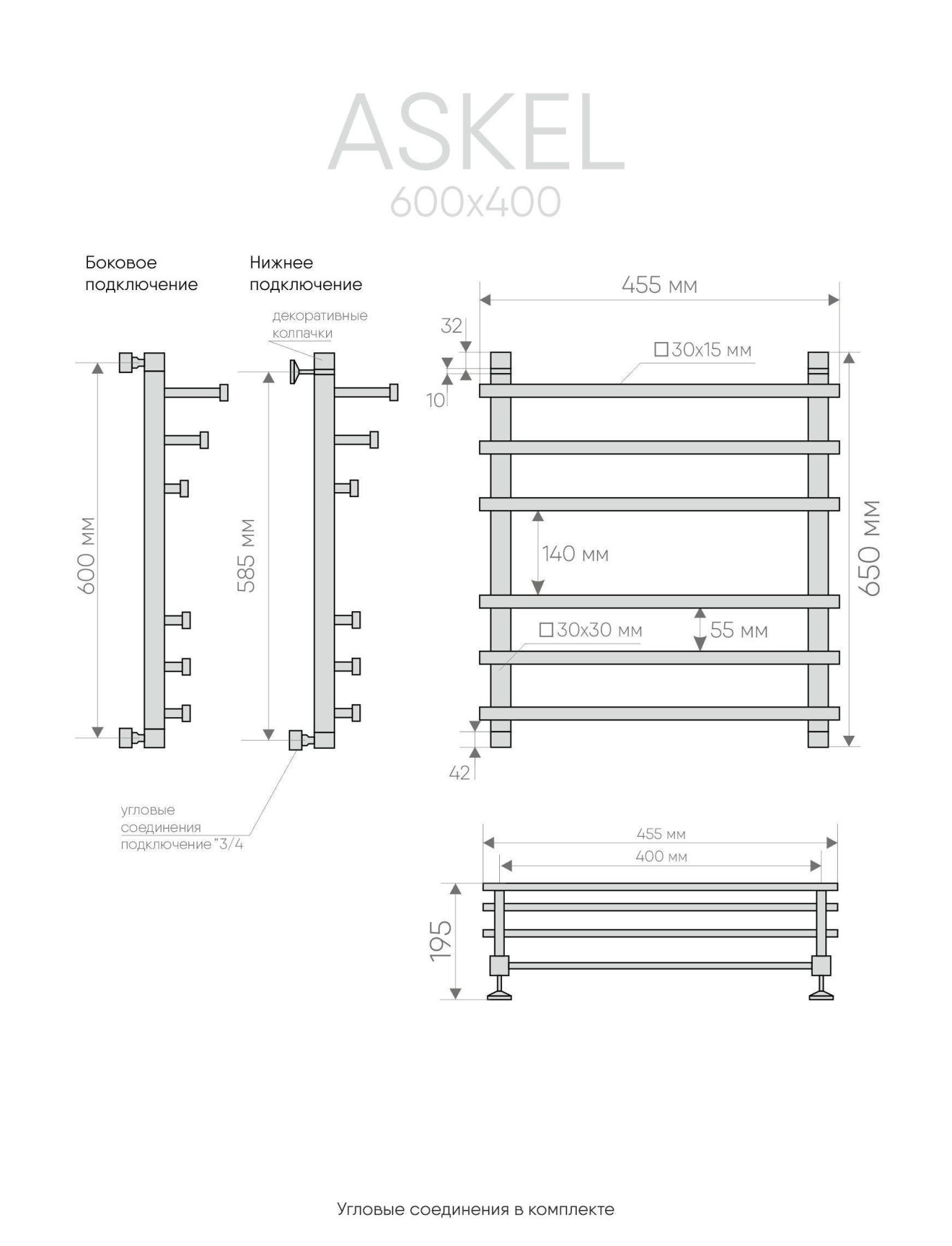 Askel это стильная современная профильная модель водяного полотенцесушителя, коллектор и перекладины выполнены из квадратной трубы.