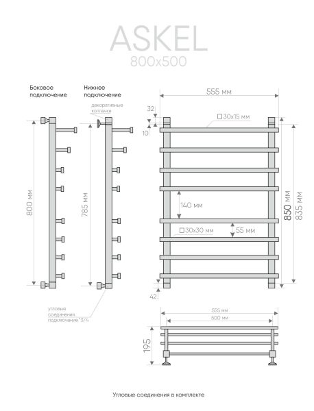 Полотенцесушитель Askel в виде лесенки c каскадным расположением перекладин. Модель изготовлена из высококачественной нержавеющей стали, прослужит долго, не ржавеет со временем. Изделие в цвете хром, с идеальной красивой полированной поверхностью, за счет граней и декоративных элементов блеск смотрится еще более эффектно. Askel это стильная современная профильная модель водяного полотенцесушителя, коллектор и перекладины выполнены из квадратной трубы.