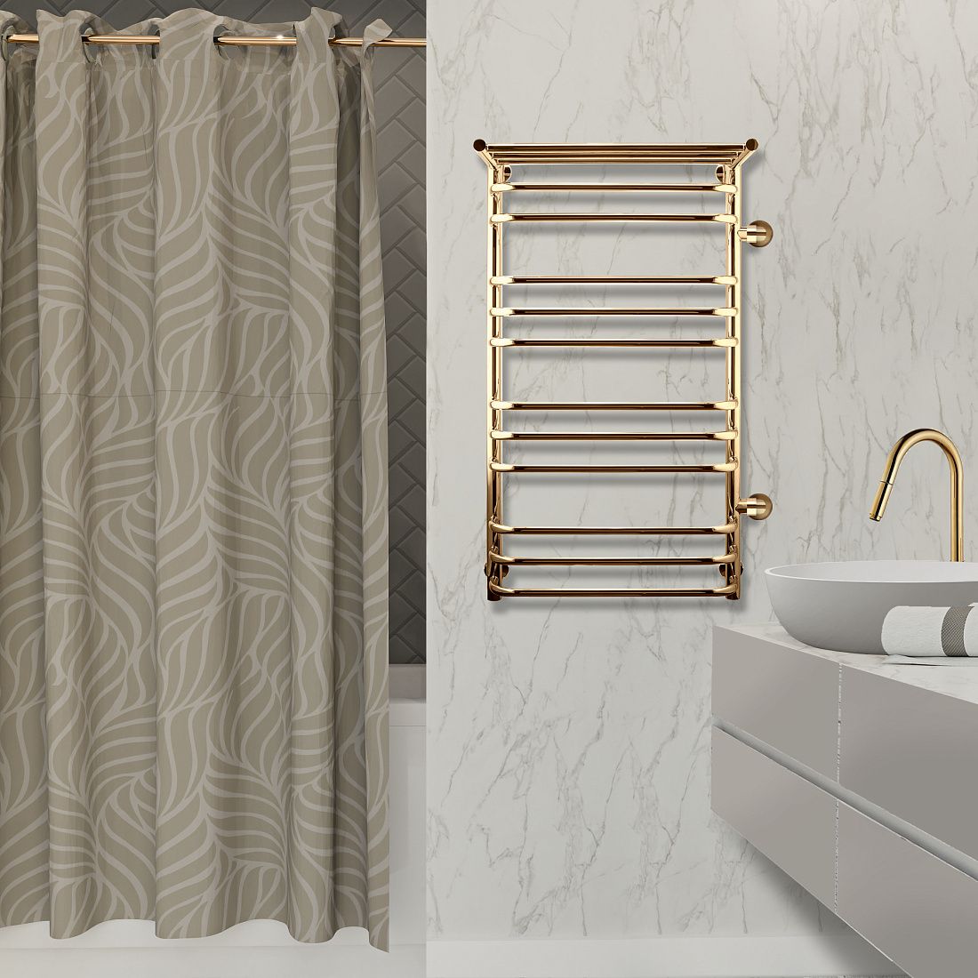 Полотенцесушитель водяной Indigo Brace LBCW100-50GDPR-б/п-60K3пр.с полкой 100x50 см золото купить