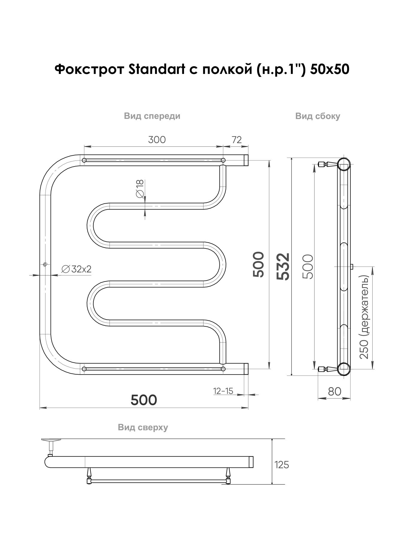 Полотенцесушитель водяной Indigo Фокстрот Standart FSW50-50P с полкой 50x50 см хром