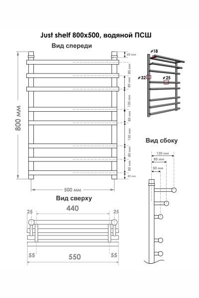 Полотенцесушитель водяной Indigo Just Shelf LJSHW80-50 80x50 см хром