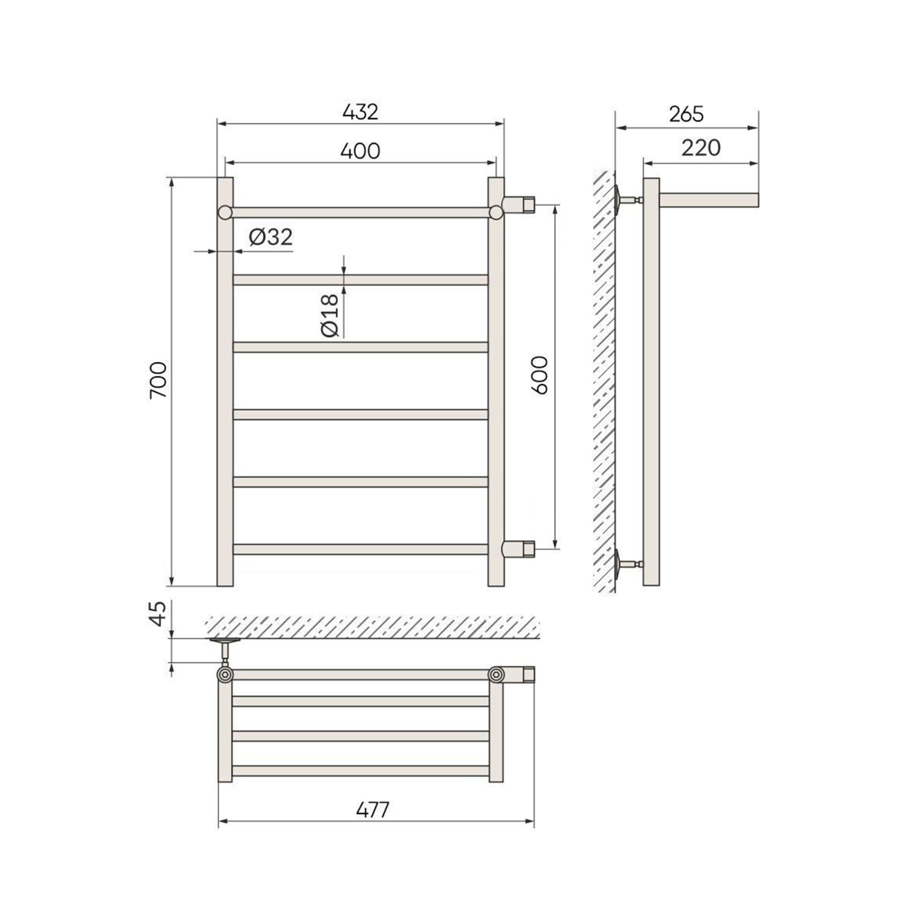 Полотенцесушитель водяной Indigo Line LLSHSW70-40R-б/п-60 с полкой 70x40 см хром купить