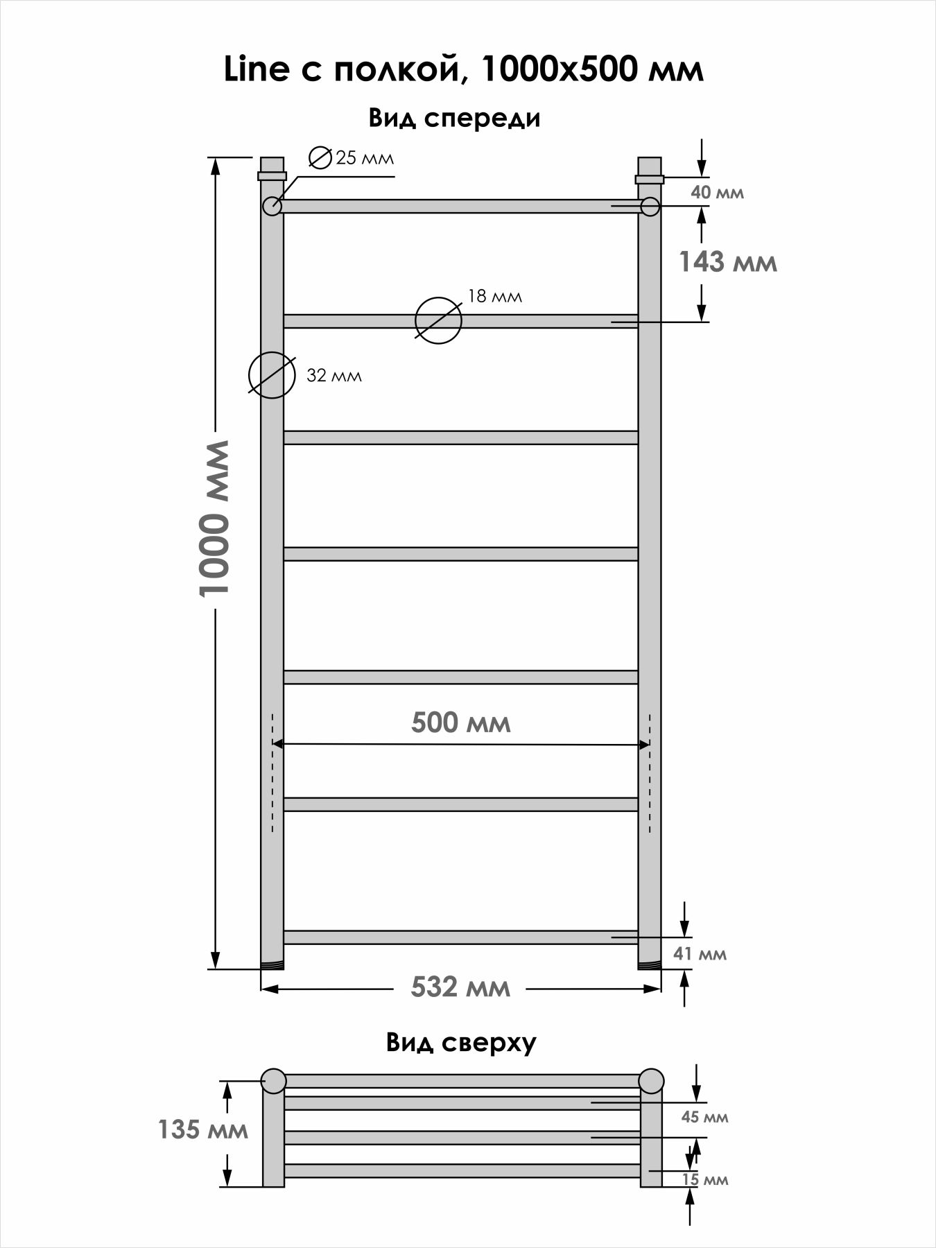 Водяной полотенцесушитель в форме Лесенки Line с полочкой удобен и функционален в использовании.... Подробнее