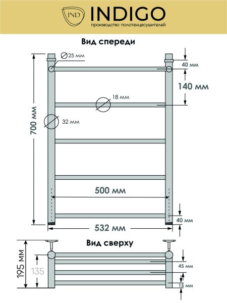 Полотенцесушитель водяной INDIGO Line с полкой в классической форме «лесенка». Функциональное изделие отлично справляется с основными задачами – сушка текстильных изделий, предотвращение влажности в помещении, предотвращение появления плесени и грибка. Модель изготовлена из высококачественной нержавеющей стали. Качественная металлообработка в местах подключений обеспечивает плотное прилегание прокладки.
